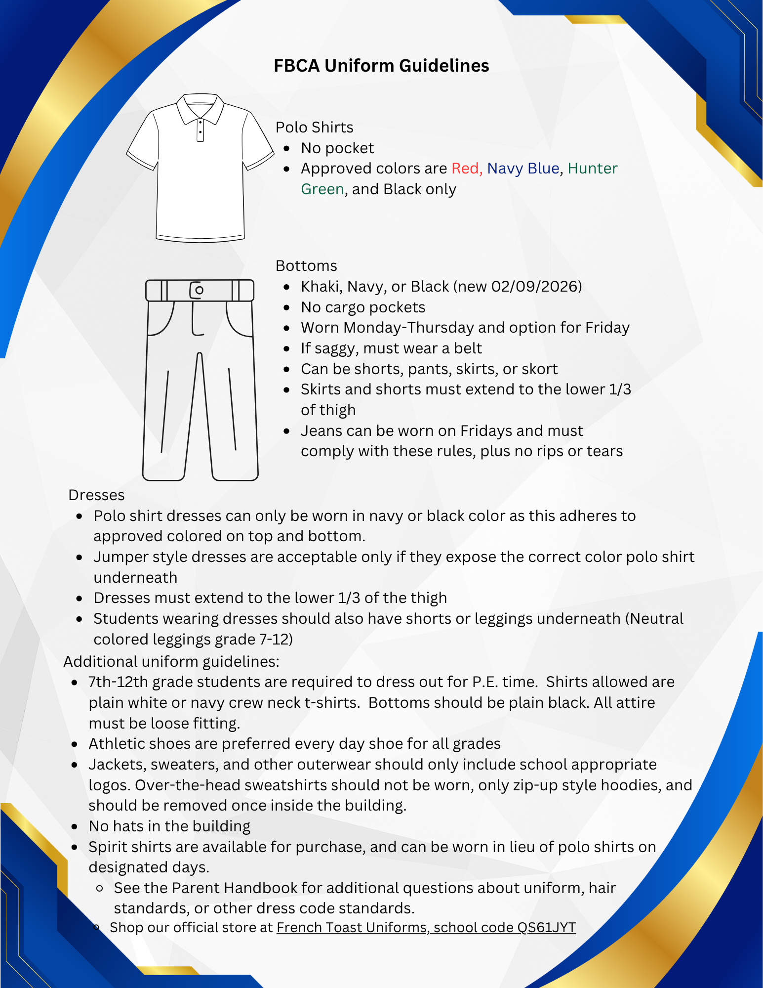 Uniform Requirements 2026-2027 School Year